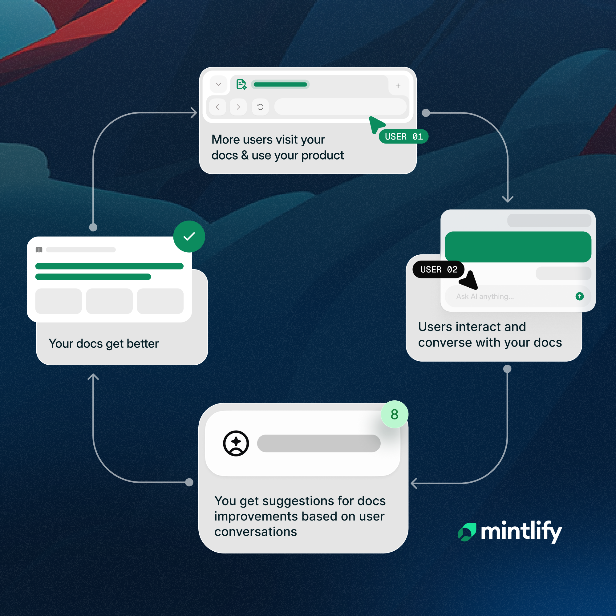 Mintlify now identifies documentation gaps based on the questions users ask your docs assistant. In this post, we break down how conversation-driven suggestions work and how they expand the existing pull request–based system to deliver a more complete view of needed updates.